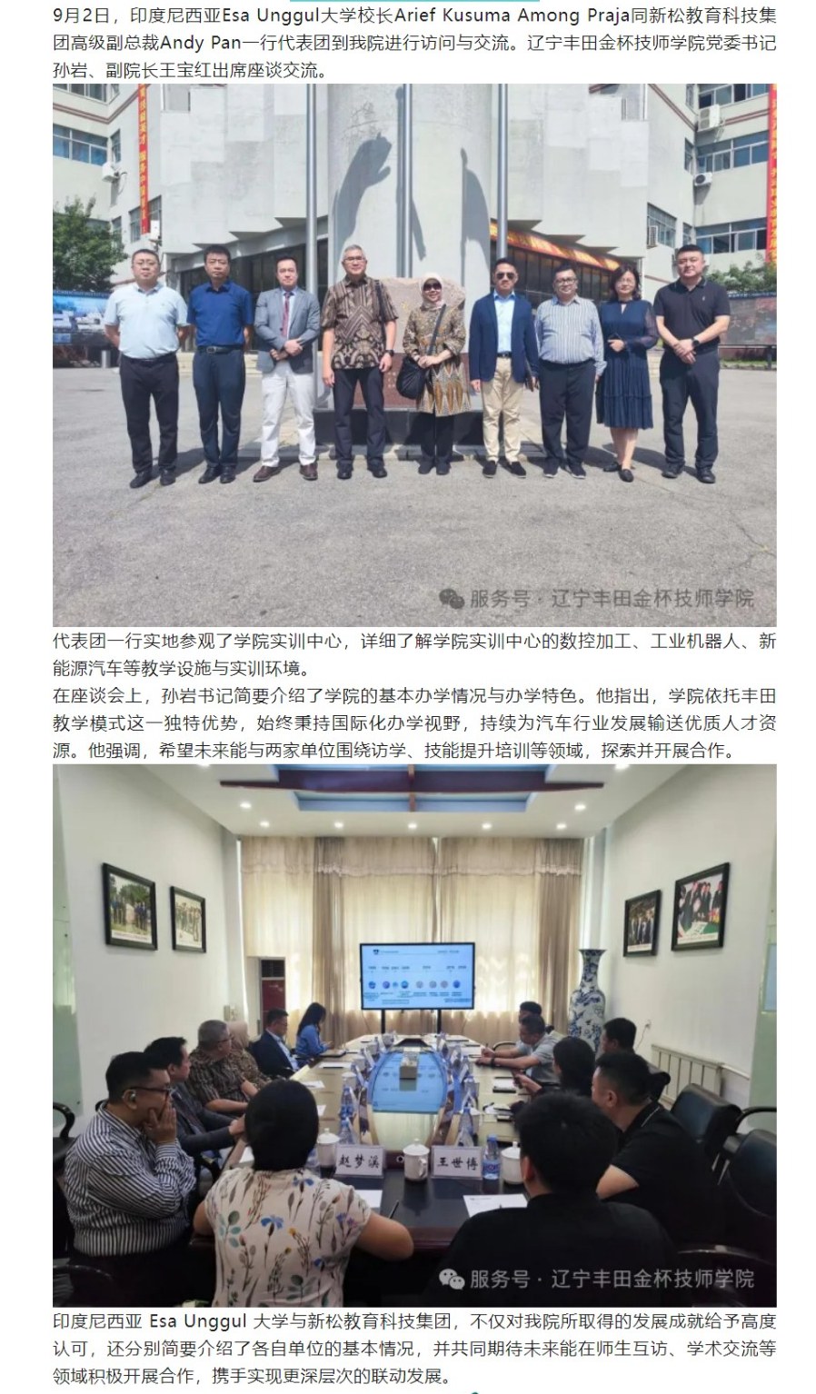 新松教育科技集团同印度尼西亚Esa Unggul大学到辽宁丰田金杯技师学院访问交流